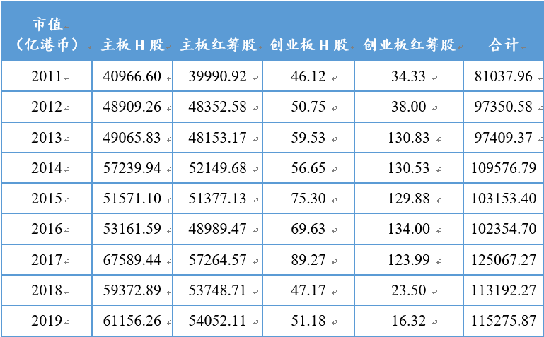 另一方面,香港资本市场是中国企业获得国际资本的重要渠道。2019年5月23日,美国总统特朗普称“在看到中方做出美意愿下的根本性的改革之前,要停止所有中国企业在美国IPO”,贸易战持续发酵给中国企业赴美国上市蒙上一层阴影。在赴美上市可能受限的情况下,香港成为中国企业吸收国际资本的重要资金池。中概股在香港上市主要有H股与红筹股两类,H股指注册地在中国内地、上市地在香港的外资股;红筹股指在中国境外注册、在香港上市的带有中国大陆概念的股票。截至2019年7月末,中资概念股票总计为452只,总市值为11.53万亿港币。