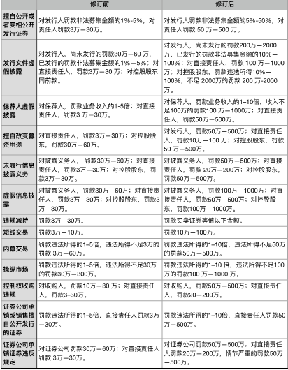 图表2:《证券法》修订前后违法违规成本对比