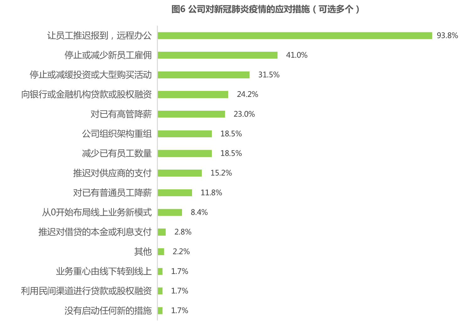 虽然我们的调研是常态化的、季度性的,本次调查期间,正值新型冠状病毒肺炎疫情(以下简称“新冠肺炎疫情”)肆虐全国,成为经济运行中突发的有巨大影响力的事件。为了更加清晰地看到新冠肺炎对中国企业的影响,读者还可以借鉴清华大学经管学院和北京大学汇丰商学院等联合问卷调查(《疫情对中小企业的影响及应对思考》 ,以及长江商学院领导力与激励研究中心对1112名长江商学院高层管理教育(EE)和长江商学院EMBA企业家学员进行的问卷调查(《开工抉择:生存与信心的博弈》)。本调研的企业对象全部为创业企业,而且大多数与互联网相关,因此调研结果与其它两个调研有共同点也有不同点,是相互补充的。