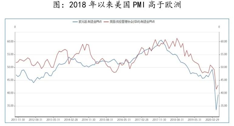 美元被视为“最干净的脏衬衫”,要找到美元指数向下的拐点,美国和欧盟经济组合应该是“美更差欧差”、“美差欧好”、“美好欧更好”,也就是欧元要强于美元,这是出现美元指数向下拐点的关键,而非美国经济自身情况,这是为什么2018年以来美元指数维持强势的原因。