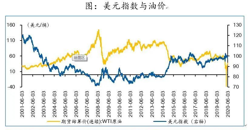 美元作为全球贸易结算货币,与原油价格负相关。美元与原油价格负相关的逻辑在于:
