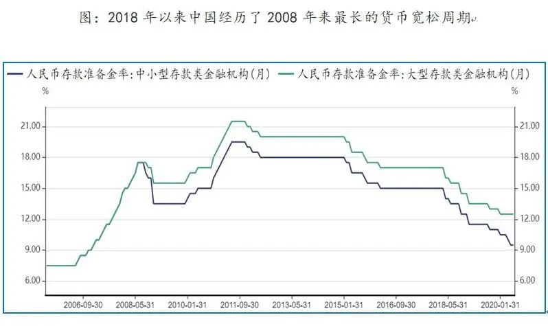2018年2月份以来,中国经历了2008年后最长的一轮降准降息周期,以托底去杠杆、中美贸易摩擦带来的经济下行,在这样宽货币政策周期下,如果凯恩斯以来的货币政策是被证明有效的,经济复苏的概率在加大——即便由于疫情导致的短暂的经济危机。