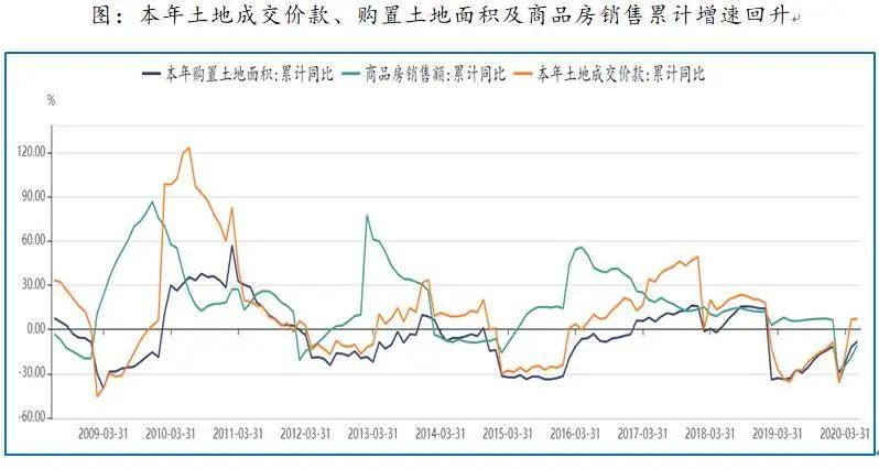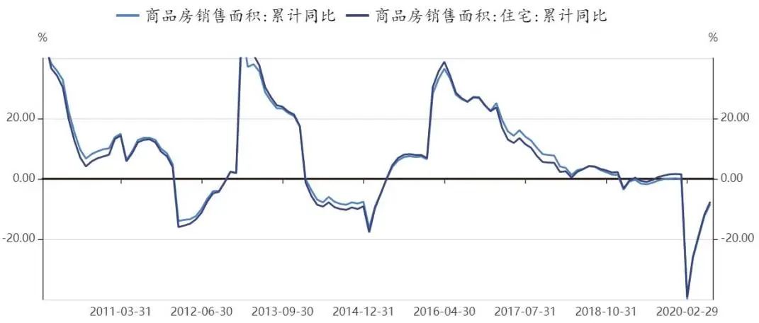 实际上,2019年7月开始,商品房销售面积和销售额累计同比增速开始回升,但受到疫情影响,商品房销售面积累计同比增速快速回调,这一点前面也已提及。