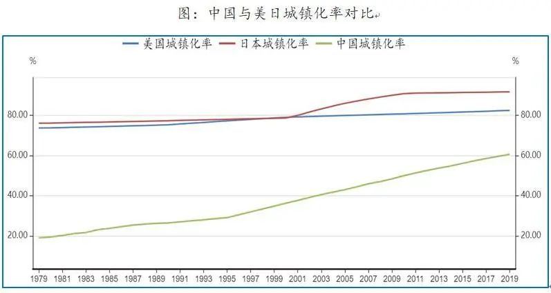 根据国家统计局数据,截止2019年底,我国城镇化率(城市常住人口与总人口比率)为61%,同期该指标美国为82%,日本为92%,世界平均水平为55%。2008年-2018年,我国城镇化率从47%上升至59%,平均每年上升1点多个百分点。城市化率上升到70%,还需要十多年。