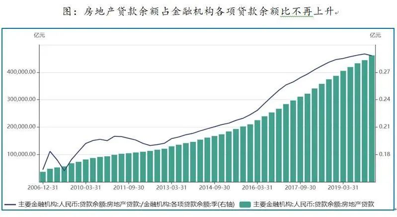 2020年1季度末,人民币房地产贷款余额占全部贷款余额比28.81%,较上季度回落。在房地产高杠杆以及信贷向房地产收紧情况下,人民币房地产贷款余额46.16万亿元,同比增速13.90%,占全部人民币贷款余额的28.81%——也即基本近1/3的人民币贷款投向了房地产。