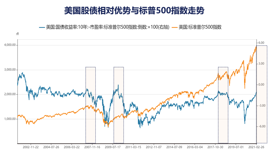 可以从两个角度来看,第一个就是从投资者的角度来看,是投10年期国债,还是买标普500指数,这里面有一个指标,来度量这两个投资的相对的优势。
