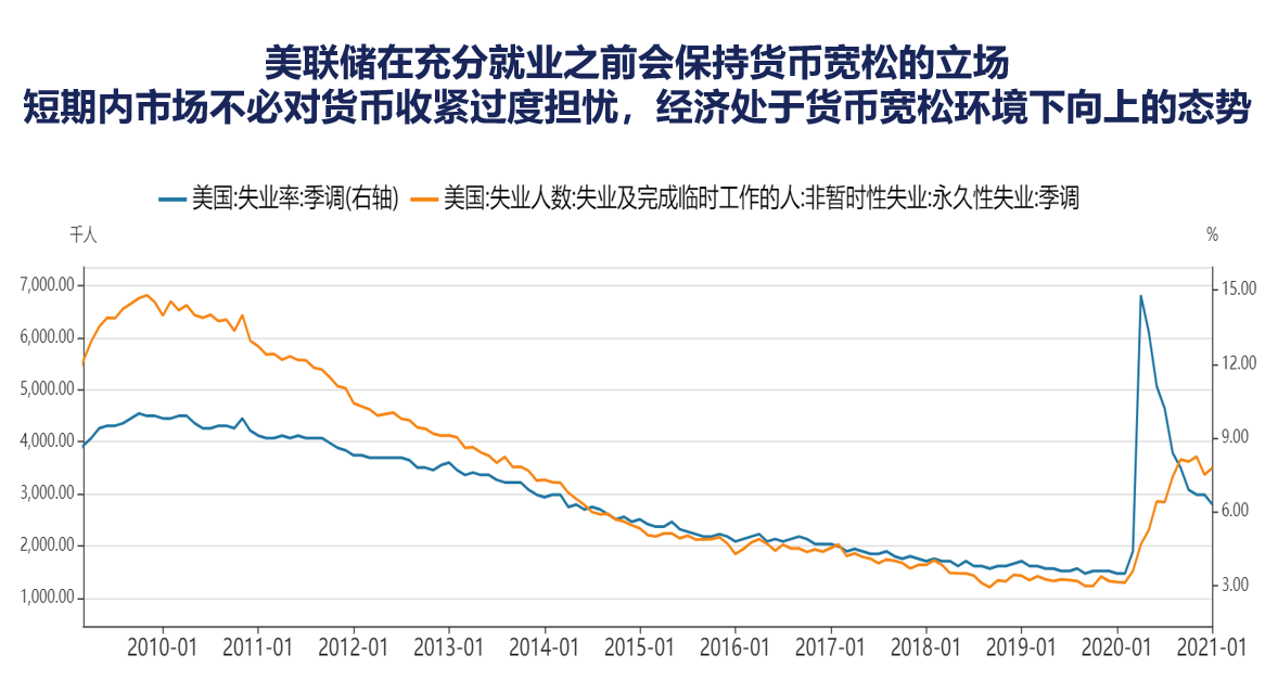 最近以拜登为首的民主党上台,从民主党的角度来讲,它的政策更加强调充分就业,更加强调为老百姓,尤其是底层老百姓的福祉来服务,所以美联储退出宽松的政策并没有那么坚决。