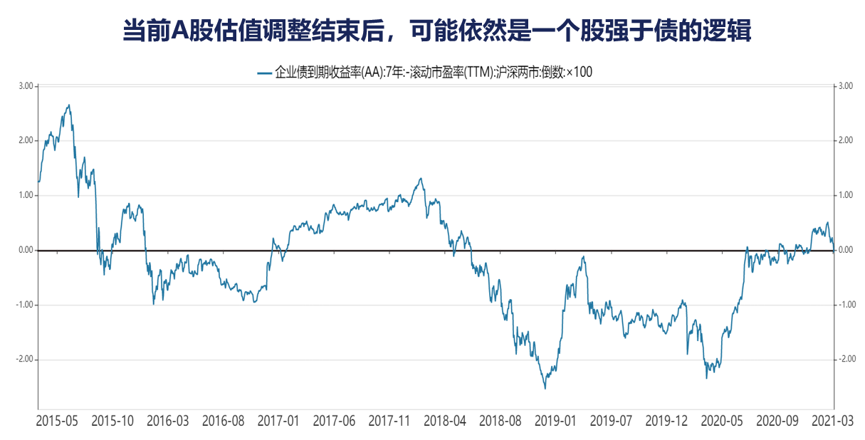 另外看A股的估值,和美国类似,中国的企业债的收益率跟比如中国股市的市盈率的倒数来做一个比较。