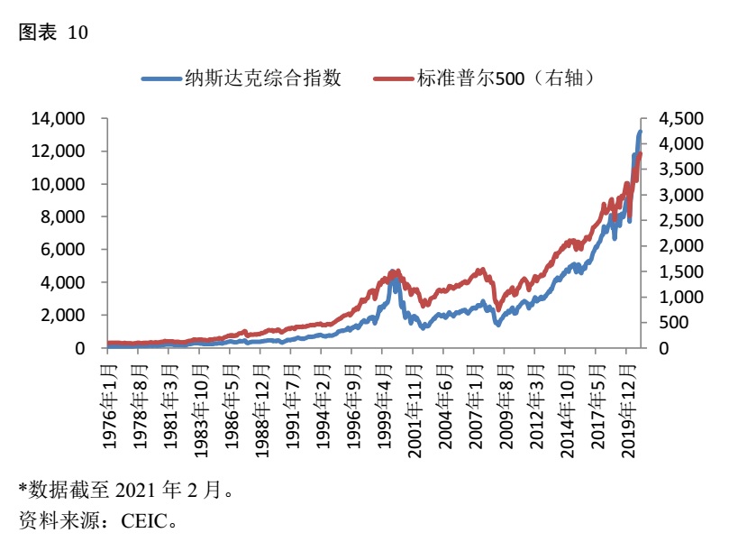 现在发达国家的央行都在实行宽松的货币政策,但货币政策是个总量政策,在金融全球化的今天,它不可能精准决定货币的走向。换句话说,美欧日等地区的央行可以决定其管辖的经济体中有多少货币或短期利率的高低,但因为这些地区没有实施资本管控,它们的央行无法决定本国货币最终会流到什么地方去。于是,股市、大宗商品、比特币,凡是可以为货币带来足够回报的地方,就挤满了大量的货币,资产价格一路攀升(图表 10)。