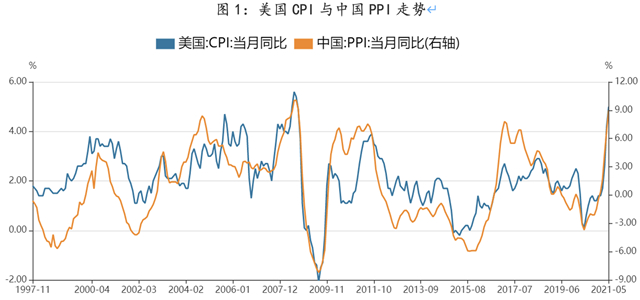 中国政府“碳达峰”与“能耗双控”政策的实施降低了煤炭等原材料的供给,从而使得价格上升。由于碳中和对碳排放量的限制,中国政府提高了对碳类排放物相关的环保要求,使该类企业增加了生产成本,从而使煤炭、焦炭、天然气和石油等含碳量高的原材料的供给随之减弱,价格上涨。此外,由于铝、铁的生产过程中需要使用焦炭、煤炭,碳类原材料成本的提高也导致了铝、铁产量的下降,最终导致铝、铁价格上升。作为中国PPI中占据重要比重的铝、铁价格的上涨,不仅导致中国PPI上升,最终也将通过供应链传导到美国,使美国的PPI与CPI相应上升。