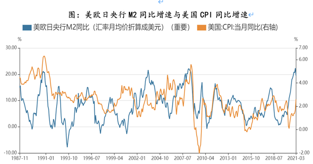 美国高负债的压力,平均通胀目标制度以及政治环境的改变使得美联储在短期内倾向于推迟加息,而一旦市场和公众对通胀预期上升,美联储再加息很可能为时已晚。虽然美联储认为必要时可以通过信用收缩来冷却通胀,但这是基于通胀预期不变的前提。一旦通胀预期上升,CPI随着M2同比增速回落而回落的现象也可能出现例外。有学者认为,上世纪70年代的通胀,一直到80年代初公众观察到美联储政策行为的改变才得以下降。所以一旦通胀预期上升,很有可能需要美联储做出结构性的调整,并且需要经过一段时间让公众接收到以后才有可能降低通胀预期。