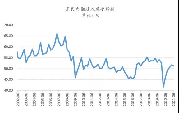 6月,城镇调查失业率5.0%,31个大城市城镇调查失业率5.2%,依然高于2018~2019年同期水平;同时,6月城镇新增就业人数124万人,低于2017~2019年同期;6月央行调查的当期收入感受指数51.20%,低于2017~2019年同期。