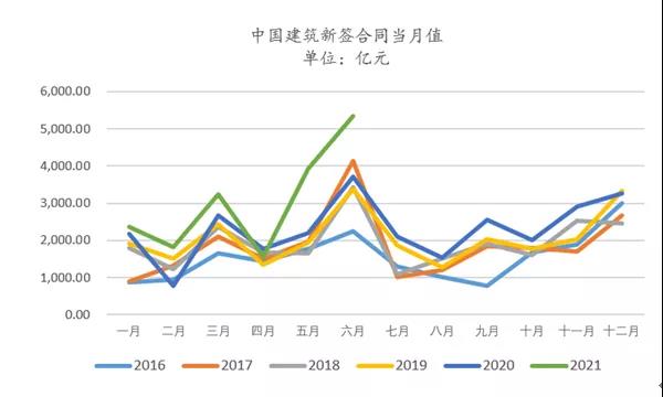 从大型企业订单来看,中国建筑5~6月新签合同额表现强劲,中国铁建、中国交建、中国中铁签单量表现也不错。