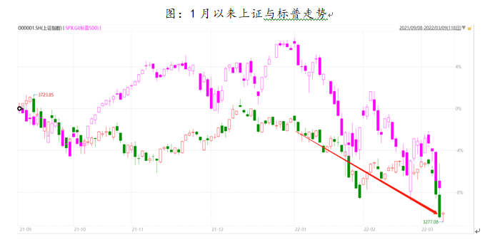 1月以后,A股进入一个较大幅度回调。A股1月后出现回调原因包括:美联储加息预期美股回调;对中国房地产企业陆续违约情况下对中国央行“宽信用”政策的质疑,以及春节临近零星疫情导致企业开工与消费偏差,A股出现回调。随后,2月公布的1月社融6.17万亿元远超市场预期,A股进入一个短暂的触底反弹,但随后2月24日俄乌冲突升级,A股随美股回落,市场出现紧张的避险情绪(图2)。
