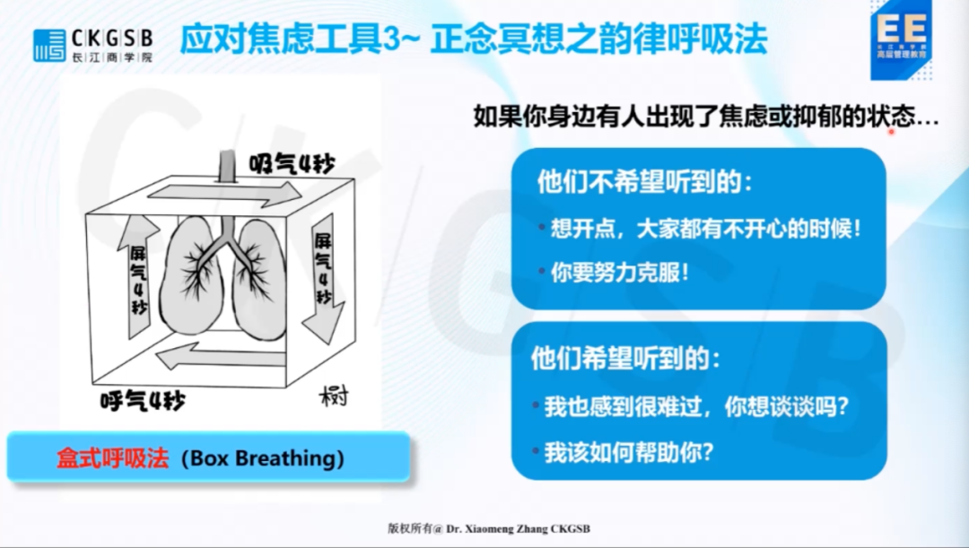 有研究中显示,仅仅几分钟的盒式呼吸就能够让自己快速恢复平静降低焦虑,因此被广泛应用在各个领域。