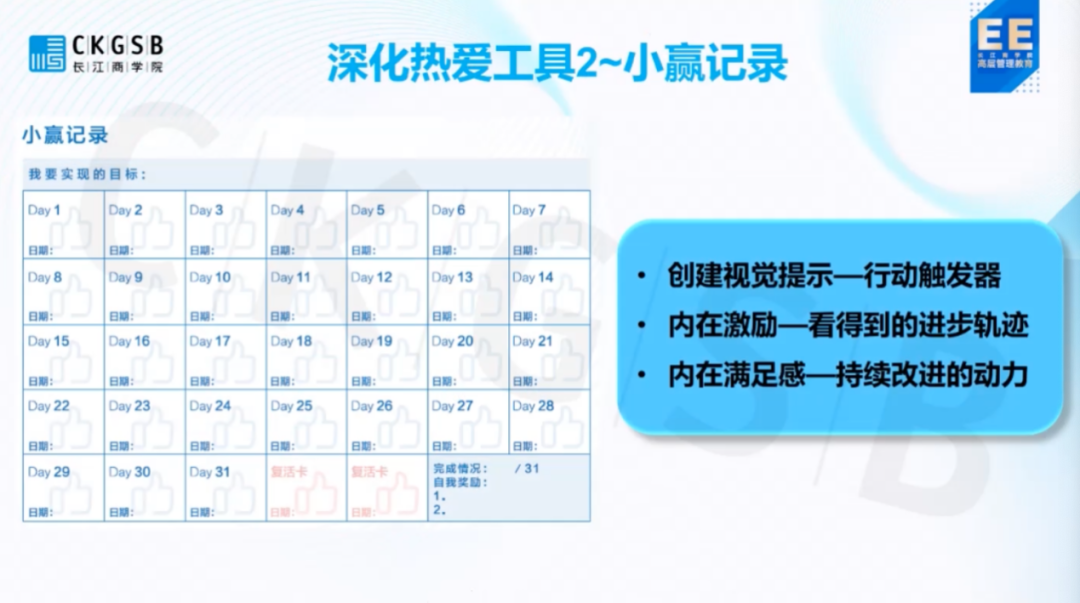 无论是深化自我觉察,探寻意义,还是加强与他人的连接都离不开持续性小赢的行动。