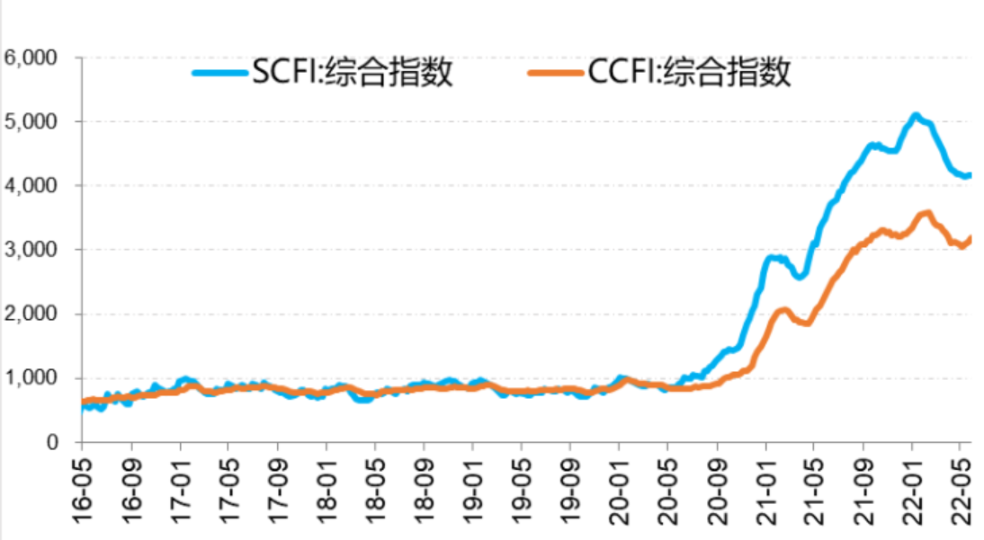 疫情后的供应链的阻塞也在恢复。随着需求下降,以及疫情后供应链修复,目前拿海运来看,紧缺的情况有所缓解,中国到美国集装箱运价逐渐下行(下图)。