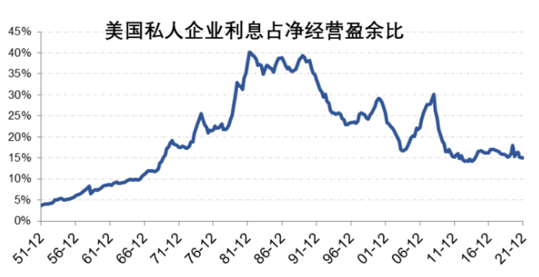 图:美国私人企业利息支出占净经营盈余比