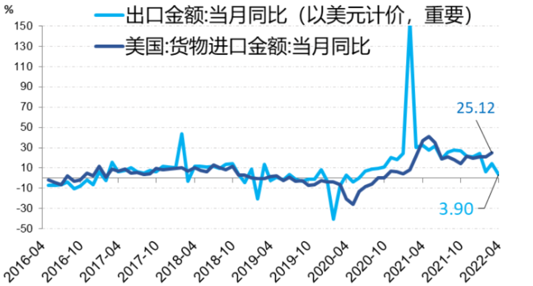 图:美国进口增速与中国出口增速