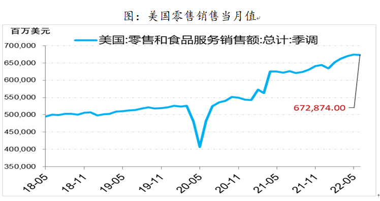 5月美国零售和食品服务销售额6728亿美元,同比增长8.1%,环比增长-0.3%,显示整体消费放缓。