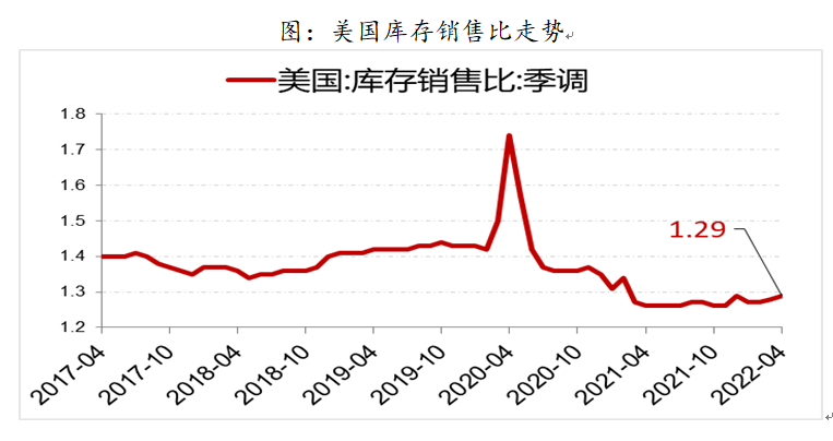 第四,美国将逐月出现累库现象,库存销售比回升。4月美国库存销售比1.29,前值1.28。随着消费的回落、库存逐渐上升,美国库存销售比将出现逐月抬升迹象。这显示经济在逐渐放缓。