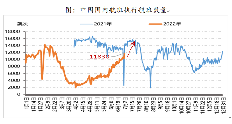 消费方面,重点观察出行与18~24岁群体失业率的改善情况。7月初国内航班实际飞行11800架次/天,依然低于去年同期15000架次/天。航空出行需求的复苏与整个消费有非常重要指示意义,这代表疫情的影响在弱化。