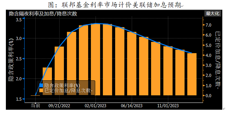 随着美联储加息推进,美国经济将出现周期性回落。面对40年来的高通胀,市场预期美联储将在2023年2月初加息到3.4%附近,再逐渐开始降息。但这一预期有可能是不充分的。为了降低通胀,美联储甚至可能需要将利率提高到约5%水平,对这极端的观点我们需要加以考虑。