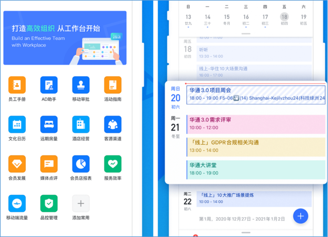 工作、日程、会议,都可以变成简单易懂的“任务”,自动更新、推送、提醒,这些功能放在以前,结合华住的人员特点,还真的难以简便和低成本地实现。