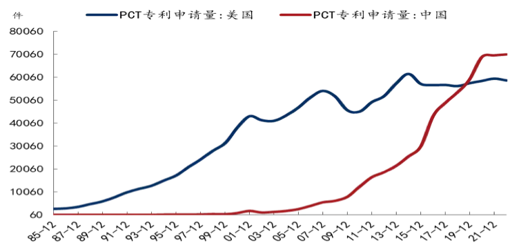 图4:中美PCT专利申请数量
