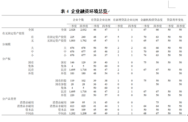 没有新增贷款企业中无资金需求的比例(98%)仍在高位,说明绝大多数企业主要由于没有资金需求而不需要贷款,并非是由于借款障碍,表明制造企业认为目前并非扩大信贷和投资的好时机。