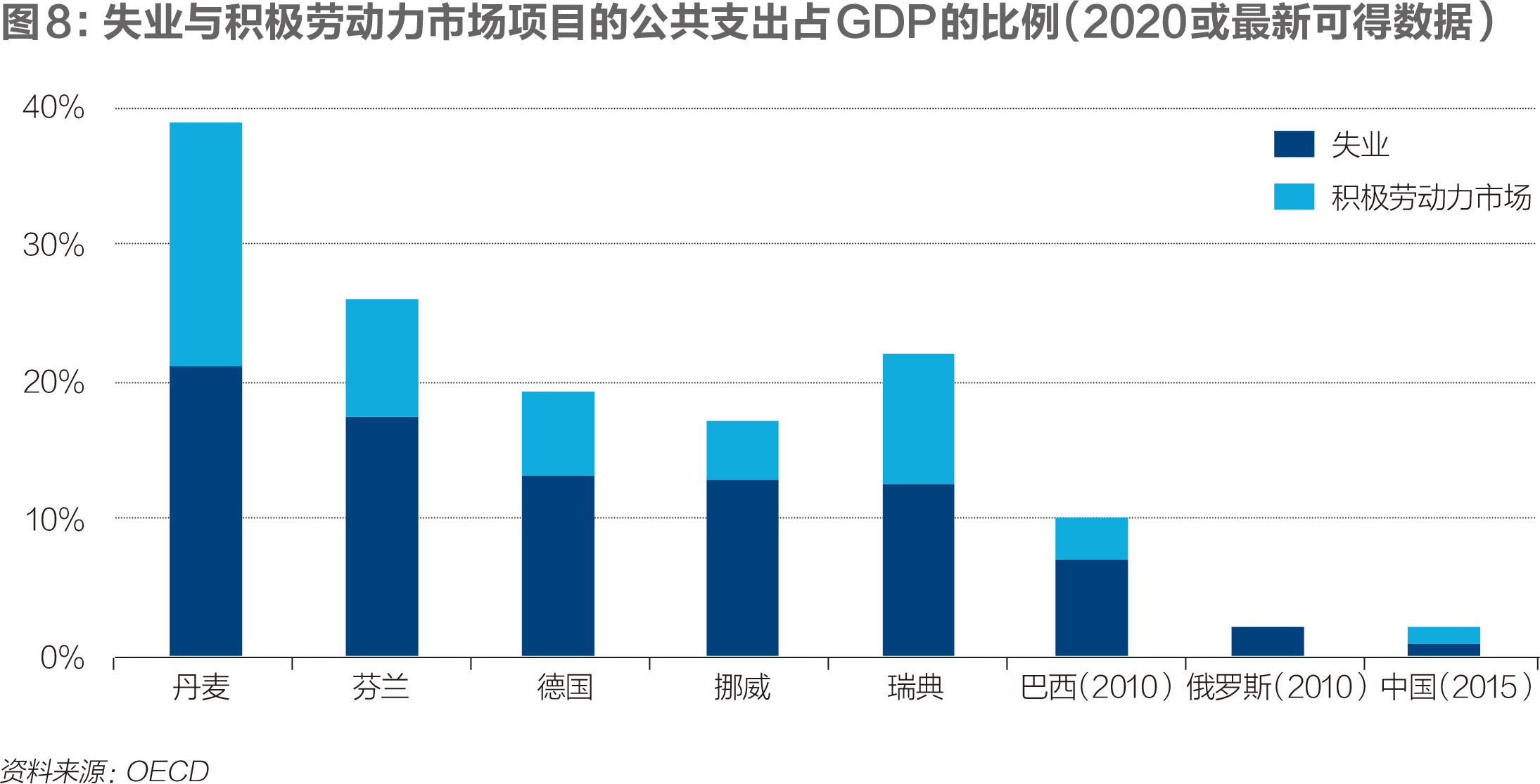 北欧及德国主动治理失业、稳定就业等激励措施构成的积极劳动力市场政策,值得我们借鉴。目前国内失业保障的公共支出较低。从覆盖率和替代率来看,很难满足失业者基本生活需求。未来还需扩大失业保障覆盖率,改善失业者的收入水平,发挥兜底保障的功能。