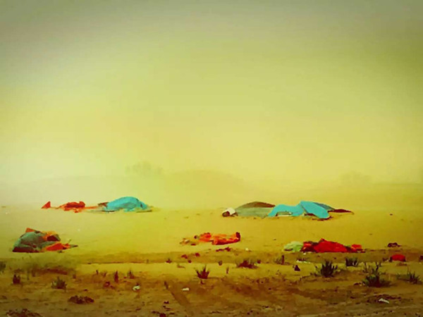 “腾格里”即蒙语的“天”,意为茫茫流沙如渺无边际的天空,暗示大部分的沙丘都是极具挑战性的流动沙丘。无穷无尽的黄沙漫天,大自然的“问候”没有丝毫情面,让所有存在无处可逃脚,脚下是走两步退一步的踉踉跄跄。