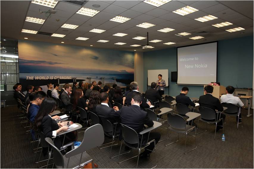 诺基亚工作人员还为来自美国密歇根大学罗斯商学院的MBA学生和巴西著名FDC商学院的EMBA同学介绍:外国企业如何与中国国有通信巨头华为、中兴等共同合作共同发展。同学们坦言,在诺基亚通信公司的拜访过程中看到了非常真实的中国市场现状。