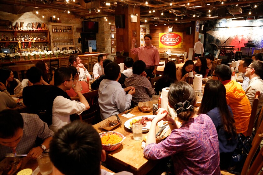 纽约也是美食之都,融合了世界各地的口味,同学们来到CBS EMBA校友Marc Glosserman创立的Hill Country餐厅,品尝了一次地道的德州烧烤。作为一个土生土长的德克萨斯人,Marc为同学们介绍了他的创业经历,“我的梦想就是让更多人知道德州烧烤,让更多人能品尝到最地道的德州烧烤。”