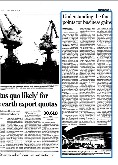 中国模块受到众多国内外商学院和媒体的关注,以下是《中国日报》对该模块的报道。点击阅读全文。