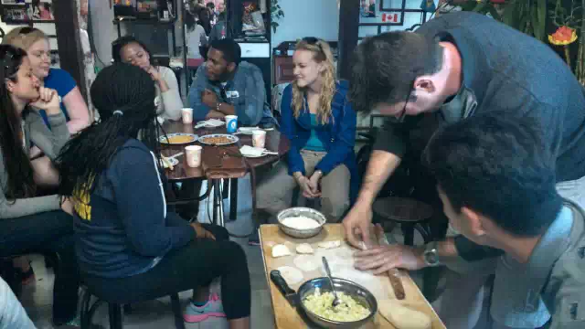 不逛胡同就不可能了解真正的北京,不可能了解中国文化。胡同原为蒙古语,即小街巷。胡同绝不仅仅是城市的脉络,交通的衢道,它更是北京普通老百姓生活的场所,京城历史文化发展演化的重要舞台。5月3日下午,来自世界各地的同学们漫步其中,细细品味北京的百科全书。晚上,他们拜访了一家住在四合院中的老北京家庭,一起学着包饺子。亲手包的圆滚滚的饺子,一口咬下去,齿颊留香,让远道而来的朋友们真正体会到了“舌尖上的中国”。