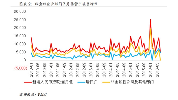 7月的信贷数据“爆冷”,单月新增人民币贷款仅4636亿元,虽然考虑到6月商业银行可能存在半年度末时点的冲贷款规模问题,但这一数字仍然创下24个月以来的新低。信贷规模总量的缩减还在其次,7月新增信贷的内部结构更加“触目惊心”,非金融企业部门单月信贷负增长,只有居民部门的新增信贷在勉力支撑,7月单月居民部门中长期信贷新增4773亿元,主要是与房地产市场相关的按揭贷款。