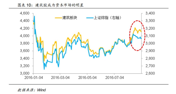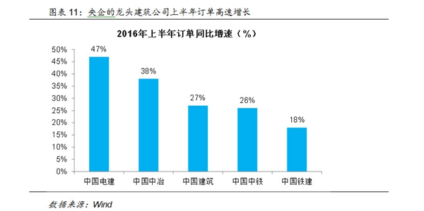 在这样的预期下,建筑板块上市公司在8月中旬开始成为资本市场的“明星”,建筑板块远远跑赢上证综指。而这样的财政加码似乎也能够得到微观验证,从建筑行业上市公司,特别是一些央企的建筑龙头公司的中报看,上半年的订单增速都在30%左右,中国电建更是接近50%。