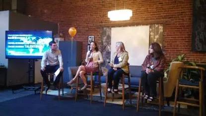 嘉宾由左二开始为Day Day Up美国总部的总经理吕颖颖女士,Odgers Berndtson的合伙人Kathryn Ullrich女士以及Blue Steps Executive Career Service的执行董事Kathy Simmons女士。