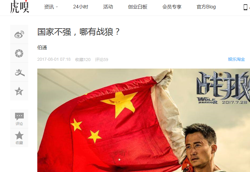强国梦,战狼梦。战狼的票房,可谓是中国梦真实的民望数据。(媒体来源:虎嗅网)