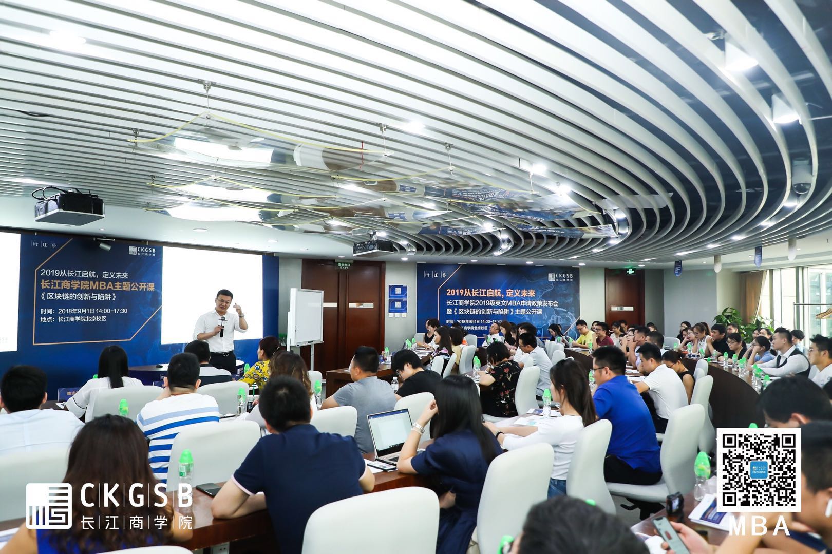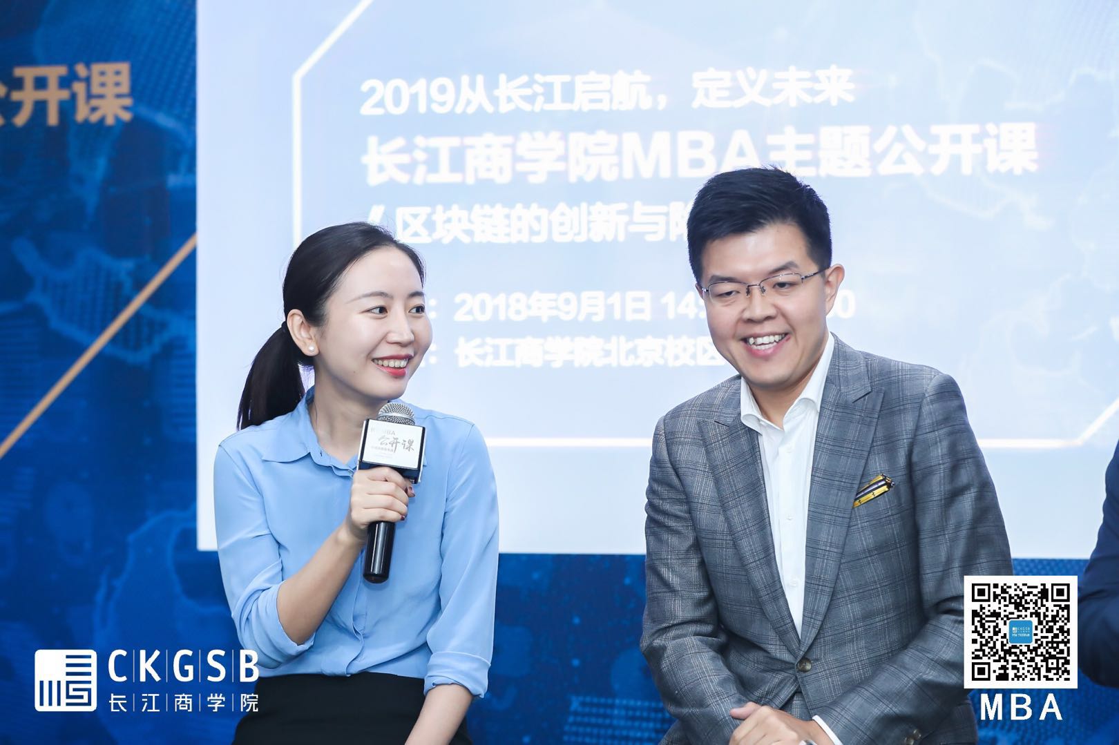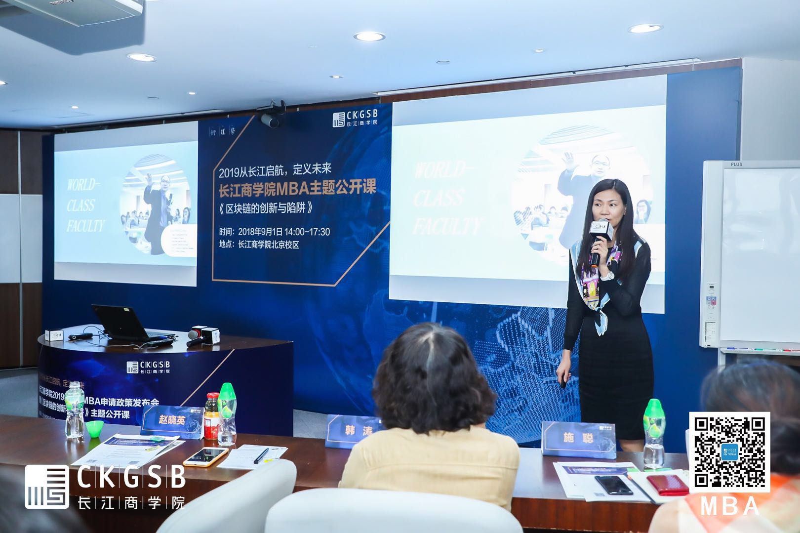 在活动开始,赵晓英老师首先对长江商学院和长江MBA项目的特色、优势以及课程设置等做了详细的介绍和分析,逐一解读了2019年最新的申请政策、招生安排和奖学金政策等申请者关心的问题。与此同时,李洋教授还为到场来宾和观看网络直播的观众以“区块链的创新与陷阱”为题,展开了一堂妙趣横生而又受益匪浅的长江公开课。