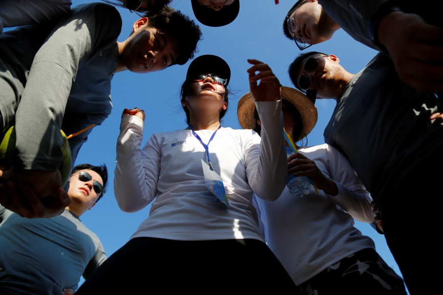 虽然已进入10月的尾声,海岛的阳光依然耀眼,30多摄氏度的气温也令人望而生畏,刚刚结束近4小时飞行的MBA新生们经过简单的休整后,就按时在拓展活动的第一站——大小洞天海滩集合完毕。