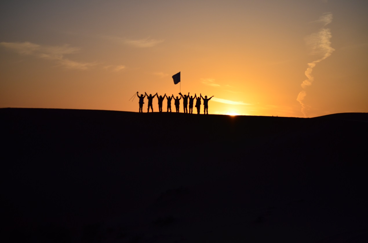 真的很难相信亚沙赛的三天就这样一瞬间过去了,这一路走来,有过汗水,有过泪水,当最后一天到达终点时,我们终于可以自豪的说,长江商学院全队完赛!我们战胜了自己!在有1/5 退赛率的沙漠徒步比赛中全队完赛,对于我们来讲是多麽可贵的胜利!只有自己才清楚的知道为了这一目标,一路走来有多少汗水与泪水,有多少的相互帮助与鼓励,有多少的坚持与不肯放弃!在这一路上,有队员由于环境不适应发烧,吃片药睡了一夜帐篷第二天义无反顾的接着走,有队员脚上磨起好几个水泡,坚持走到营地医治,涂了碘酒疼的掉眼泪,第二天一走仍然背起包忍着疼接着走……一个个靓丽青春的面孔透出坚定与坚持!一路走来我们相互鼓励,相互扶持,走不动时互相打气、逗趣,一幕幕都是难以忘怀的情谊!无朋友不户外!正是因为有每一个人的付出与努力,我们才能绽放亚沙,成就自己!